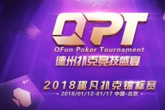 QPT(QFunPokerTournament)是深圳趣凡網絡科技有限公司舉辦的國際性撲克錦標賽,比賽將于1月12日在北京打響,比賽周期6天,是2018年度首場百萬級別德州競技