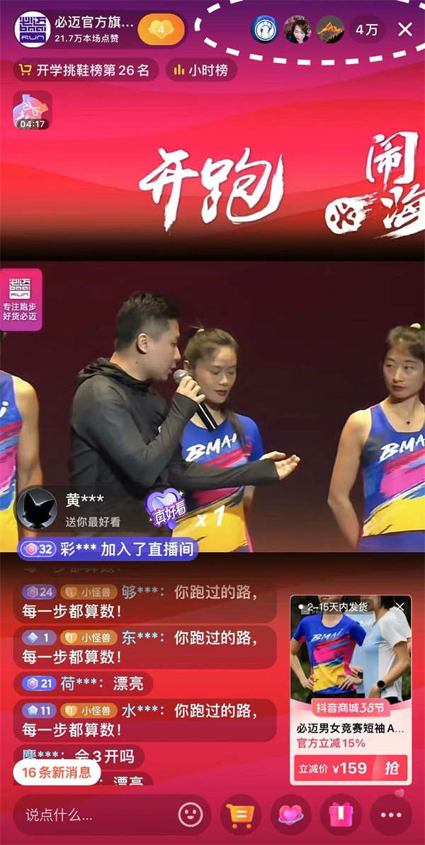其次,線上線下多場景聯動,全方位放大品牌聲量。除了線上的熱點話題運營、搜索運營和直播,必邁還在線下開展了「開跑節」活動,活動高峰期在線觀看人數破4萬。線上線下相結合的方式提高了品牌質感和活動的豐富度,由此,必邁的聲量和影響范圍獲得全方位提升。