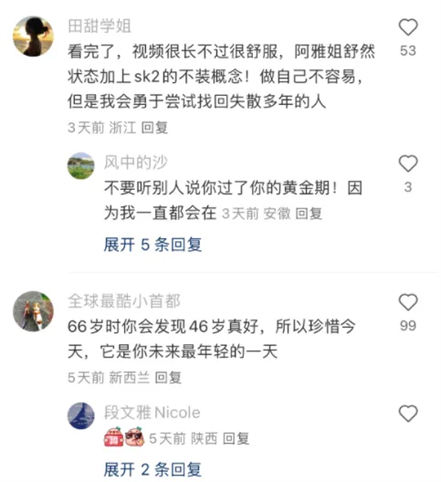 “26歲的我年輕閃耀,但46歲的我只做自己”“從25歲到35歲,不再為別人的期望而活,而是為了自己的熱愛奮斗”“擺脫年齡焦慮以后,我自由了”......在一條條筆記中,我們看到越來越多女性隨著年紀(jì)的增長,如何從懵懂青澀轉(zhuǎn)變成勇敢自信的樣子。