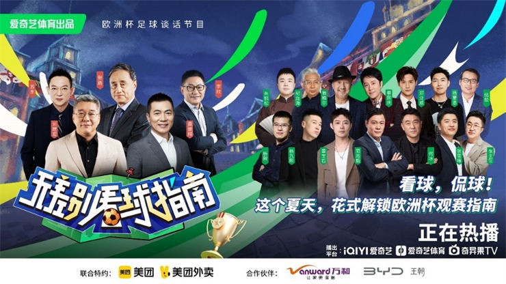 另一檔節目《無差別看球指南》,是愛奇藝體育聯合美團外賣、萬和及比亞迪王朝元家族等合作伙伴共同呈現的歐洲杯足球談話節目,劉建宏、黃健翔、張路等資深足球解說坐鎮,邀請眾多體育、娛樂、文化界嘉賓參與。節目通過AR技術加持,搭建出虛實景結合的歐洲街頭風景,營造出熱烈的歐洲杯氛圍。節目不僅包含歐洲杯無差別辯論、陣容前瞻等足球專業內容,也包括了歐洲杯神奇百科指南以及前方報道視角的歐洲杯16種看球方式等趣味內容,無論資深球迷還是足球小白,都能在這檔節目中找到樂趣。