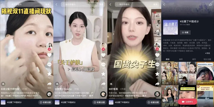 雙11期間,抖音電商利用了全域興趣電商的生態優勢,幫助國貨護膚品牌打造產地溯源、達人種草等多元化優質內容,致力在雙11期間實現「中國成分」的概念擴傳,充當著類似“放大鏡”“加速器”的關鍵角色。