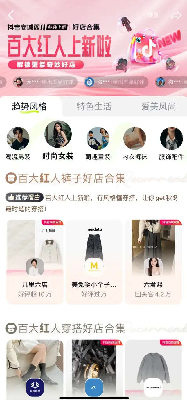 在雙11期間,抖音電商還上線了極具平臺特色的冬裝上新品類日與「百大紅人上新啦」活動。各大頭部服飾品牌、抖音電商作者與服飾主理人紛紛加入「服飾上新」大潮,為抖音用戶帶來款式豐富的應季新品。就在這一天,服飾品類上新超過17000款,整個服飾品類都迎來流量與銷量雙重爆發。