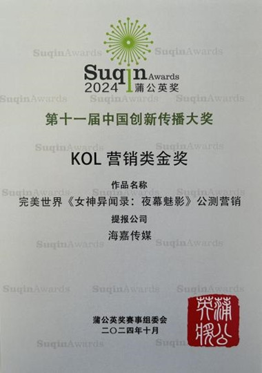 第十一屆中國創新傳播大賽(蒲公英獎)結果揭曉,HiGuide海嘉傳媒再次入選【公關代理商TOP20】榜單,并獲得【三個金獎】和【一個銀獎】。賽事評選對象涵蓋了公關、廣告、活動和互動等領域,共有99家公司報送了409個作品,評審出54個金獎,金獎案例勝出率約10%。海嘉傳媒報送的【完美世界《女神異聞錄:夜幕魅影》公測營銷】榮獲內容組【KOL營銷類金獎】和IP競賽【IP用戶體驗類金獎】,【OPPO A3 Pro新品傳播】榮獲區域組【事件傳播類金獎】和策略組【話題營銷類銀獎】。