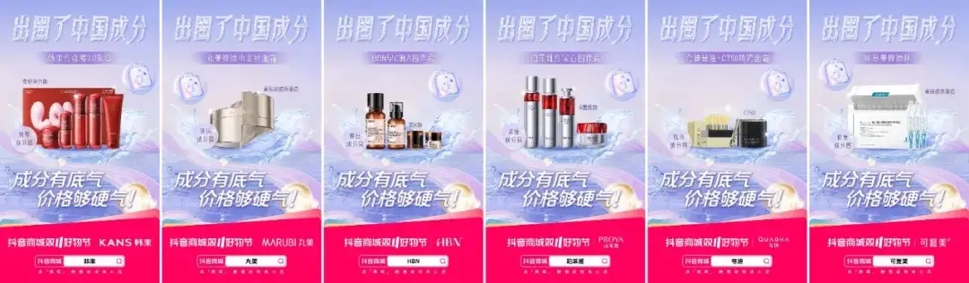 抖音電商可以說是這些品牌生意增長的“加速器”,直接把品牌核心成分生動展示在消費者面前,同時作為種拔草一體的全鏈路陣地,它還可以通過達人合作、挑戰賽等優質內容,以及直播、貨架等一整套鏈路,豐富且提升消費者的購物體驗的同時,不斷打響“中國成分”話題聲量。