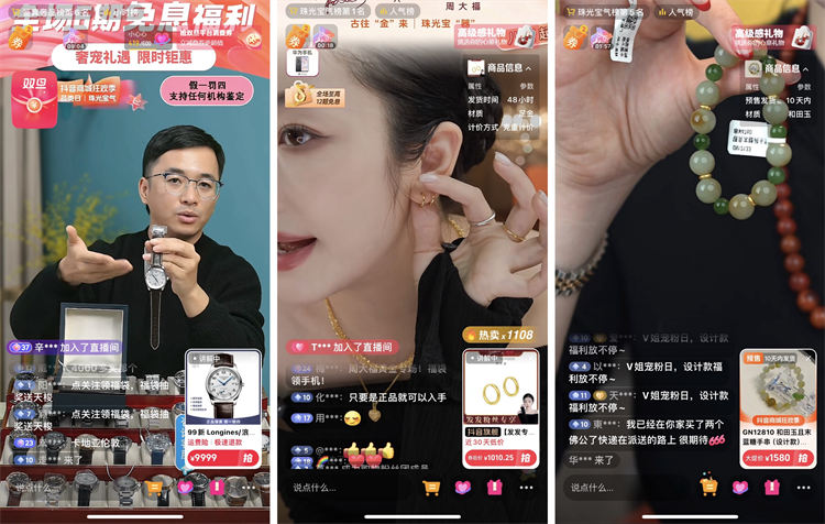 在全域興趣電商的生態下,好內容始終是生意發展的“源頭活水”,是商家獲取流量、打開增長空間的關鍵所在。作為強視覺吸引力、深故事底蘊的商品,珠寶潮奢向來自帶“關注光環”,極具內容溝通價值。基于此,“高級感新年禮物”活動期間,一眾珠寶潮奢商家在豐富多彩的直播間玩法基礎上,紛紛開始嘗試內容型直播間。