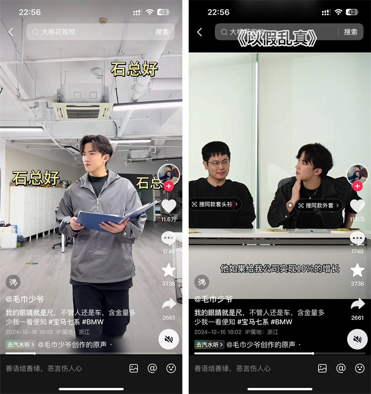 潔麗雅企三代石展承,還有一個更為人所知的名字是“毛巾少爺”,作為“家族顯眼包”,他將真實的家庭背景、人物關系融入時下走紅的霸總爽文,通過《毛巾帝國》系列短視頻,呈現了潔麗雅家族的發展史,不僅孵化出自帶霸總人設的IP,也讓老牌國貨成功翻紅。