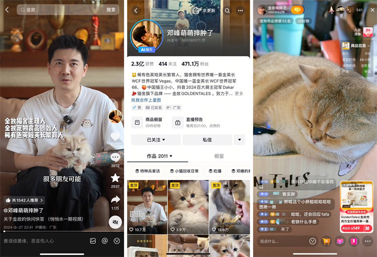 萌寵博主@鄧峰萌萌摔腫了 在全網擁有千萬粉絲,而用戶之所以支持他,主要還是因為他的真誠。鄧峰不但會記錄自家小貓的成長日常,每周日還會在抖音直播間和網友聊天曬貓,分享貓咪喂養知識。這些真實且有愛的動作,才是他的IP能夠贏得用戶信任的關鍵。