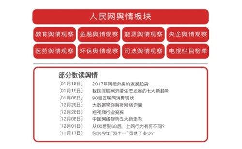 人民網輿情數據中心已擁有個性化、垂直性監測功能的互聯網輿情監測系統,該系統基于網絡輿情傳播規律,及時、全面地監測境內外新聞網站、論壇、報刊、電視、廣播和知名博客、微博,并在此基礎上進行數據的抓取、挖掘、聚類、分析和研判,以實現網絡聲譽管理、輿情監測、敏感信息預警、內部風險管理評估、突發事件實時追蹤和宣傳工作評估考核等功能。