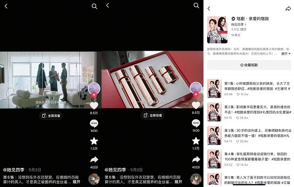 抖音另一差異化資源優勢,是短劇。隨著短劇的受眾快速擴大,品牌紛紛入局。這個520,有的品牌已在短劇中找到了增量。