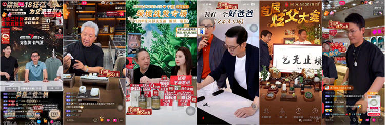 多個達人直播間也通過創意內容與名人加持,掀起父親節消費熱潮。@交個朋友直播間 攜手柒牌總裁為父親節獻禮,帶動PV增長137%;@玉雕大師·馬學武品牌店 由國家級玉雕大師上場講解,助推PV增長506%;@千惠 直播間夫婦合推薦明星同款洗發水,拉動GMV增長386%;@李好 直播間上演父子互動書法秀,拉動PV提升33%;@吳元全藝術館 藝術大師出境授匾,直播間PV猛增535%;@普陀山小帥 探訪翡翠賣場,“爸氣獻禮”拉動單場成交超600萬。