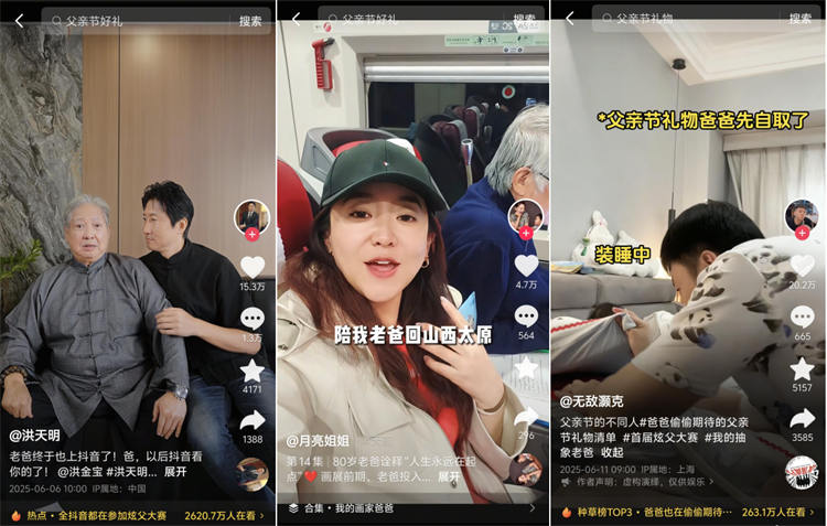 從李連杰、洪金寶等多位父輩熟悉的武術明星抖音首播再現經典熒幕形象,到超千場自播商家與達人直播GMV“多點開花”,「首屆炫父大賽」成功激活父親節情感營銷與消費潛力,助力多品類商達共贏。