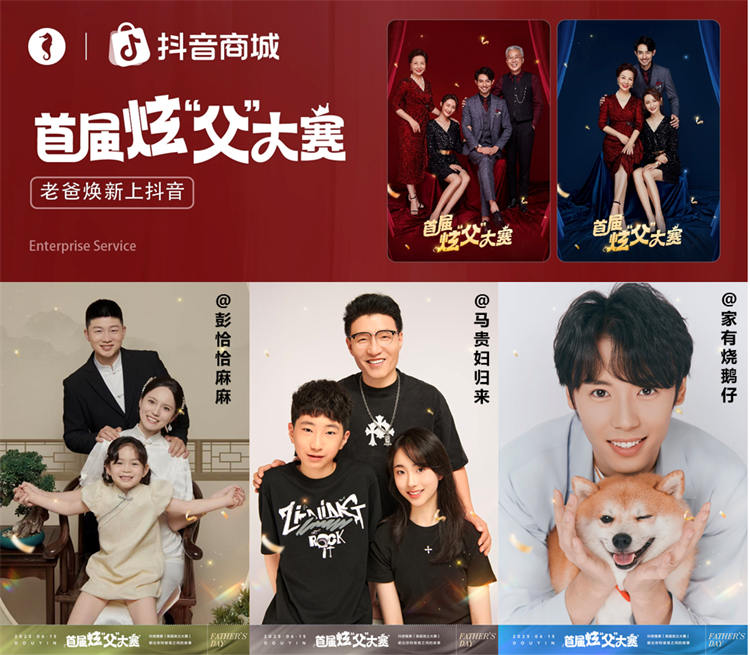 抖音商城錨定這一營銷痛點,于6月8日至13日推出「首屆炫父大賽」618父親節品類日,通過賽博、抽象、凍齡、高能量四類老爸人設,帶動明星、達人、普通用戶紛紛參賽“炫父”;攜手洪金寶、洪天明、謝天華等「明星老爸天團」、以及行業頭部商達開啟系列主題直播秀;疊加抖音特效、海馬體聯名寫真等多渠道的互動方式,和系列豐富的特色貨品供給,促進用戶參與熱情、種草意愿與轉化效率的全面提升。