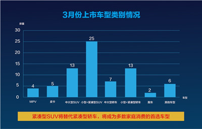 3月份上市車型類別情況統計