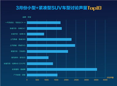 3月份上市小型+緊湊型SUV車型討論聲量對比統計