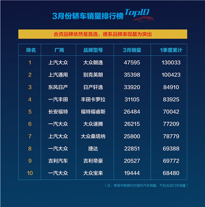 3月份轎車銷量排行榜top10