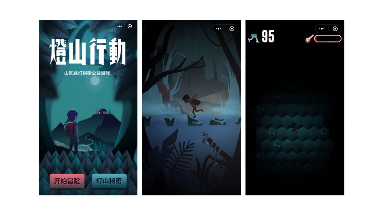“燈山行動”這支案例最大的不同是顛覆了大多數公益廣告過于沉重的氣氛,通過互動性極強的微信小程序(小游戲)的創新模式,將公益通過輕松幽默的方式傳遞出去,讓用戶在“氪金”游戲中切身體驗到了山娃娃摸黑上學的危險,并樂于捐出愛心,創造改變。這樣高留存度的新形式中打動了超過128萬體驗用戶,募集逾200萬元捐款,幫助多個偏遠山村修建路燈。