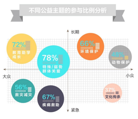 在多種多樣的公益主題中,我們總結出特殊/弱勢群體關愛、教育助學成長、疾病救助、環境保護、救災減災、動物保護、文化傳承7大類。無論是解決實際問題,還是為世界添磚加瓦,總有一款適合你。