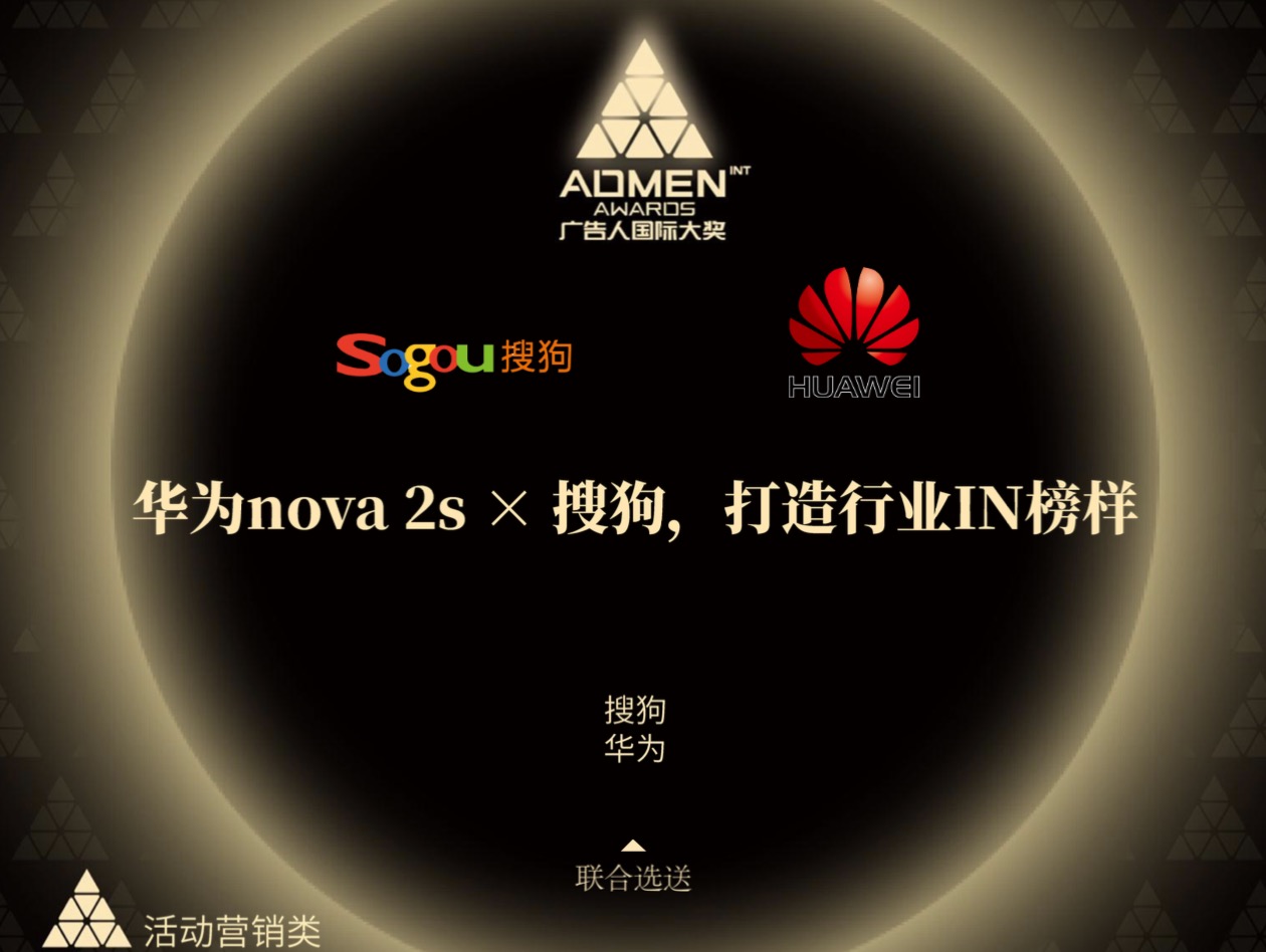 在《華為盛典案例》中,搜狗整合了輸入法、網址導航、手機瀏覽器等具有科技感、娛樂性、備受年輕群體青睞的資源入口,以“IN榜樣”品牌標簽,多維度、全方位連目標受眾人群,串聯HUAWEI nova 2s產品進行網友互動。