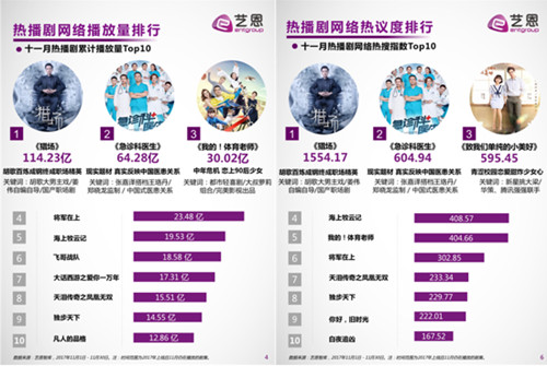 根據“藝恩”十一月熱播劇數據顯示,《獵場》拿下了當月播放量、網絡熱度的雙料冠軍。