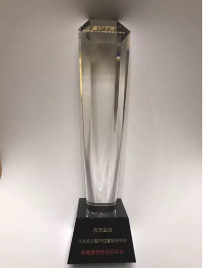 圖為:品友擎天柱榮獲“年度最佳營銷云平臺”大獎