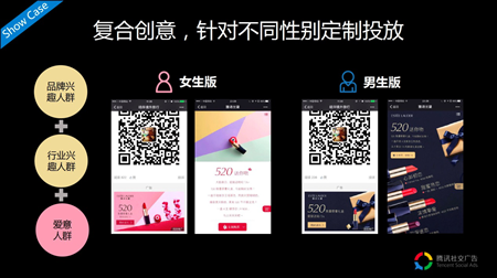 根據(jù)洞察發(fā)現(xiàn),唇妝產(chǎn)品是彩妝品類中最受年輕人歡迎的,而且年輕男性也越來越喜歡將高端品牌唇妝作為禮物送給心宜對象。5.20當(dāng)天,雅詩蘭黛制作女生版和男生版廣告創(chuàng)意頁面,通過騰訊社交廣告針對不同性別定向投放微信朋友圈,并融合“支付+卡券+送禮”等不同功能,攜手微信生態(tài)體系,形成從在線購買、一鍵領(lǐng)取到社交互動及到店自提的營銷閉環(huán),進(jìn)一步完善了整個營銷鏈路的用戶體驗。