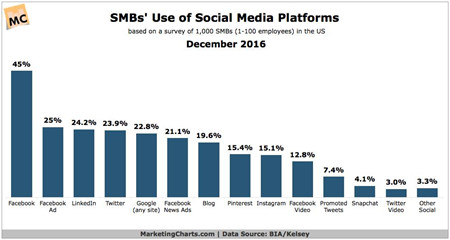 上述的企業是各自領域的領先者,有著強大的資源優勢,通過與社交網絡的化學作用,希冀打通CPC2的通路。基于上述討論邏輯,Twitter仍然具有上述價值。而同樣具有合作價值的社交媒體則甚至可能包括Pinterest、Instagram這樣的廠商。通過下圖,我們可以看到中小企業對這些平臺的重視程度。