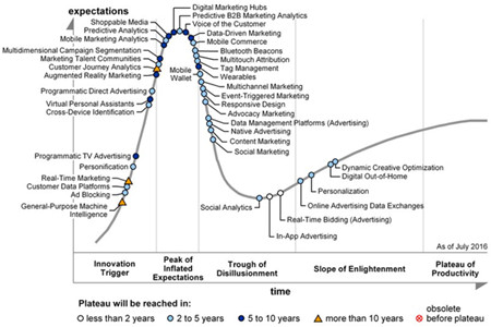 在托比網看來,CPC2將擁有廣闊的未來。而近期Gartner的一份研究報告旁證了這一趨勢。近期Gartner公司披露的Hype Cycle for Digital Marketing and Advertising( 2016)給了我們啟示——營銷技術(Martech)和廣告技術(Adtech)的融合、事件驅動和即時營銷、用戶畫像的個性化,以及溝通線索的使用是營銷的四大關鍵因素,他們將把營銷引導進入數據時代。