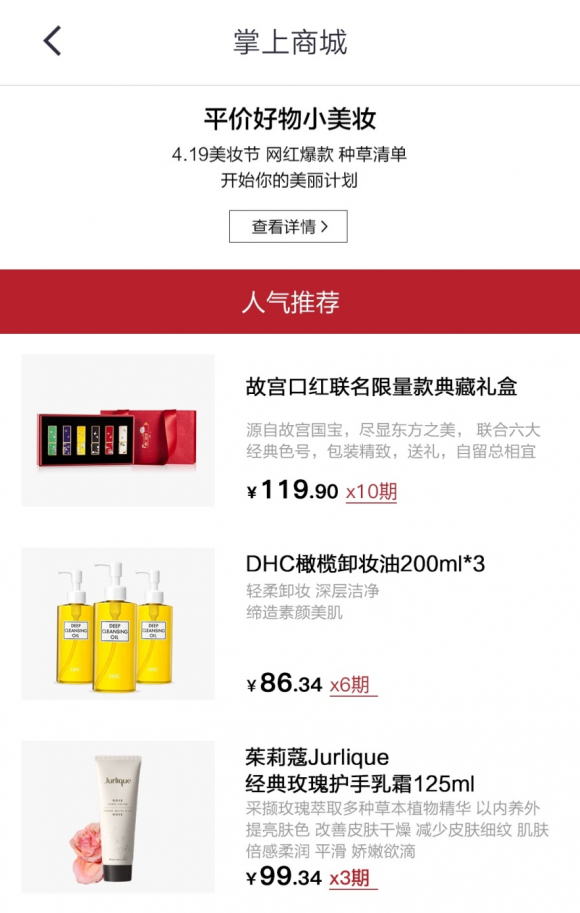 “爆款”也是此次美妝盛典一大關鍵詞。據悉,此次活動不僅有全網難求的爆款,還有限量產品發售,加上掌上商城免息分期、5倍積分等活動,對用戶來說更有吸引力。