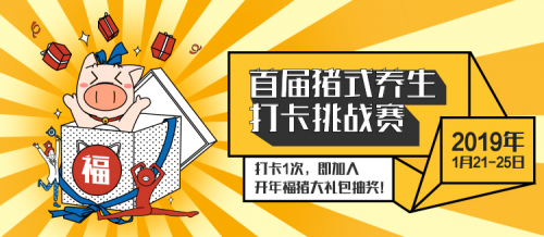 2019月1月21,#豬式養(yǎng)生打卡挑戰(zhàn)賽#在調(diào)養(yǎng)家APP站內(nèi)趣味登場(chǎng),從年輕人日常飲食、起居、運(yùn)動(dòng)、情志四個(gè)維度規(guī)劃挑戰(zhàn)內(nèi)容,打造了乖豬起居、優(yōu)豬飲食、小豬漫步、豬子語錄四大挑戰(zhàn)賽,用戶只需完成以上其中一項(xiàng)挑戰(zhàn),就有機(jī)會(huì)獲得2019開年大禮包,成為幸運(yùn)福豬,與2018年流行的“錦鯉”異曲同工。