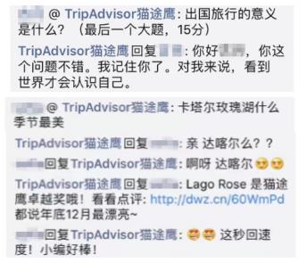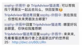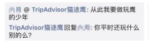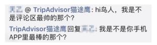 也有不少吃瓜群眾大呼“貓途鷹實在太會玩”,不得不說,這種真誠、零距離的互動吸引了大批網友關注。這波兒全民@TripAdvisor貓途鷹互動(以下簡稱為“@貓途鷹”)的陣勢到底是怎么玩出來的呢?筆者第一時間人肉到貓途鷹 “本尊”,拿到獨家爆料。