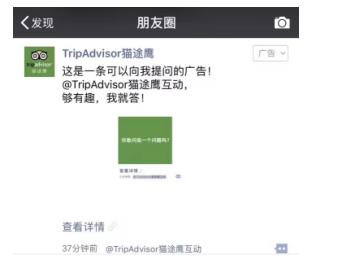 先給沒搞清楚狀況的朋友科普一下——5月25日凌晨零點開始,大家的朋友圈都陸續收到了來自TripAdvisor貓途鷹的廣告推送,據炫酷的小視頻示意,直接@品牌進行提問就能得到回復,吃瓜群眾半信半疑地試了下,竟然還真收到了回復。于是,這一互動起來就一發不可收拾了……