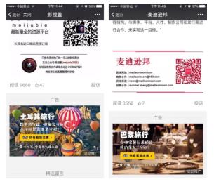 同時,為了覆蓋更多潛在受眾,貓途鷹還進行了微信公眾號底部優雅大圖的投放。通過行業有影響力的公眾號,進行文末推薦,讓用戶一眼看到貓途鷹提供的吃喝玩樂信息,通過各類公眾號的廣泛曝光,深度與廣度兼具,吸引大眾關注、了解品牌信息。
