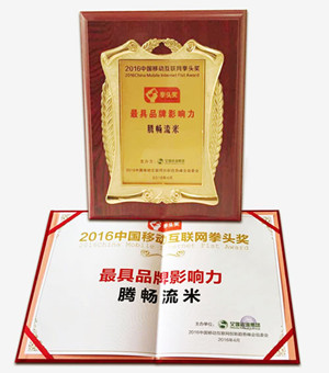 “2016中國移動互聯網拳頭獎” 頒獎盛典于4月15日在上海小南國花園酒店舉行。在本屆評選中流米憑借優質的營銷服務解決方案和行業領先的獎勵營銷平臺一舉斬獲“最具品牌影響力獎”,彰顯了流米在營銷方面的飛速發展和實力。
