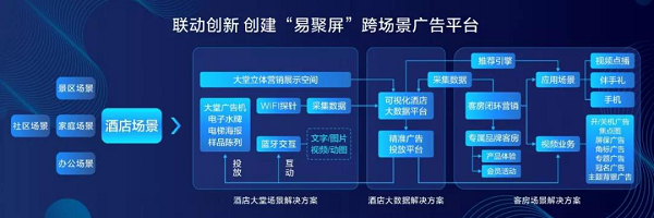 正如,張聰所介紹到的,康佳易平方賦能酒店場景后,將以“易聚屏”跨場景廣告平臺為服務中臺,構建基于場景與大數(shù)據(jù)的酒店大堂場景解決方案、酒店大數(shù)據(jù)解決方案、客房場景解決方案,而這些解決方案不只是解決廣告主在營銷中的訴求,更是通過物聯(lián)網(wǎng)的酒店服務,為用戶解決他們的困擾,提供用戶切實所想的內容與服務。