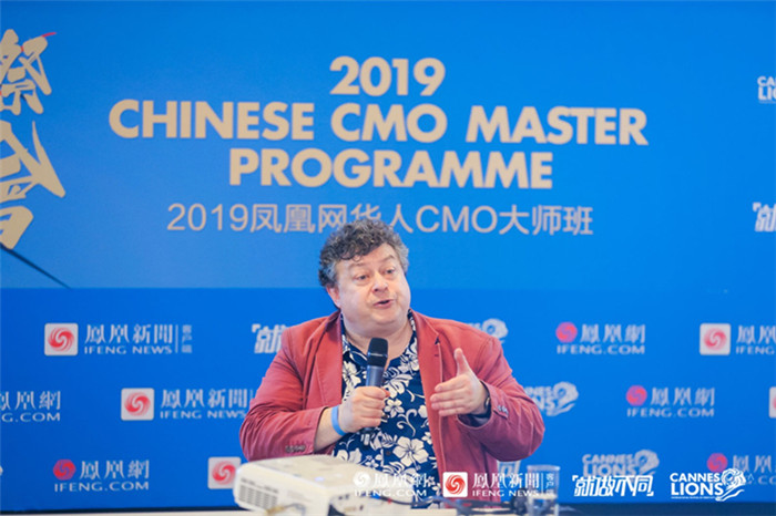 “華人CMO大師班”由鳳凰網(wǎng)與戛納創(chuàng)意節(jié)組委會在2018年共同發(fā)起,聯(lián)合享譽全球的非盈利營銷培訓(xùn)機構(gòu)The Marketing Academy(營銷學(xué)院)共同舉辦,是戛納創(chuàng)意節(jié)歷史上首次設(shè)置的面向華人營銷領(lǐng)袖的頂級培訓(xùn)課程。2019年的第二屆“華人CMO大師班”,由馬丁·索瑞爾爵士領(lǐng)銜的,來自谷歌、瑪氏、奧美、麥肯錫、聯(lián)合國等17位全球知名機構(gòu)和企業(yè)的高管受邀擔(dān)任講師,分享見解。