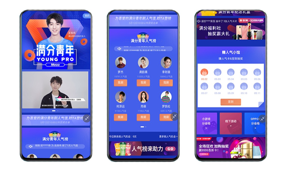 在預(yù)熱期,“滿分青年計(jì)劃”通過線上頁(yè)面,告知用戶線下活動(dòng)門店地址和活動(dòng)玩法等信息,引導(dǎo)用戶到OPPO指定門店購(gòu)物,獲取大額人氣券碼為自己的偶像助力。