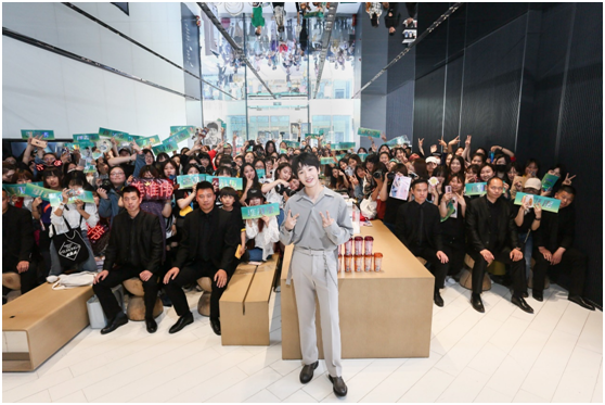 線下活動(dòng)日同時(shí)也成為品牌露出的絕佳時(shí)機(jī),MECO果汁茶在現(xiàn)場(chǎng)特設(shè)人氣果汁茶專區(qū)和滿分人氣禮盒與O粉互動(dòng),滿分青年獲獎(jiǎng)?wù)哌B淮偉也到場(chǎng)助陣,在旗艦店以明星快閃形式引爆宣傳,形成線上線下的營(yíng)銷閉環(huán)。