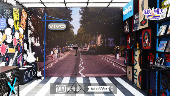 在棚外草坪上,《樂隊的夏天》模擬音樂節現場布景還原“Live”文化,與各大品牌共創音樂節“帳篷”,并且在網綜史上首次將“帳篷”部分內容完全開放給品牌進行設計。品牌通過精心策劃,能夠將產品功能深埋于“帳篷”設計之中,最終讓樂迷感受到品牌的誠意與價值觀。例如,vivo X27手機打造了致敬披頭士經典公路封面的照相館,成為樂迷們拍照打卡圣地;一眼來電的純電動別克VELITE 6,用聲光電技術打造出炫酷的來電舞臺,成為樂隊和現場觀眾的即興音樂充電站;樂堡啤酒在帳篷內分發音樂節毛巾熒光棒,成為觀眾現場氛圍的最佳物料。