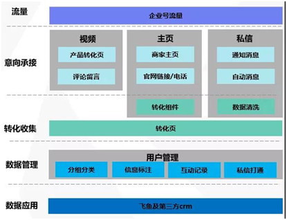 隨著功能的不斷完善,企業(yè)藍V已逐漸建立起服務(wù)商家的完整閉環(huán)。基于抖音的短視頻生態(tài),多渠道為企業(yè)號引入流量,同時利用視頻、主頁及私信等功能等承載用戶的轉(zhuǎn)化意向,實現(xiàn)高效深度轉(zhuǎn)化。企業(yè)藍V不僅為企業(yè)解決了營銷、轉(zhuǎn)化的需求,同時向商家提供了用戶管理、線索管理等CRM功能,實現(xiàn)用戶資產(chǎn)積累,讓抖音藍V的運營能夠常態(tài)化、持久化,持續(xù)不斷為品牌和商家的增長助力。