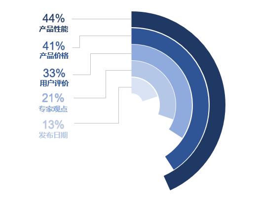 以"折疊屏"手機為例。Twitter2019最新海外用戶調研數據顯示,大部分Twitter用戶(44%)把關注點放在折疊手機的產品性能上;緊隨其后是價格因素,41%的Twitter用戶關注"折疊屏"的價格,此外,用戶評價、專家觀點和發布日期,也成為Twitter用戶對于"折疊屏"手機的關注點。