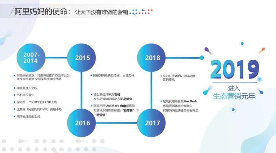 “千人千面”的消費者需求趨勢,對以往固有的營銷方式提出了挑戰。2019年,阿里媽媽將早先由阿里巴巴提出的“全域營銷”升級為“生態營銷”,致力于為阿里生態中的客戶提供全鏈路整合營銷服務方案。