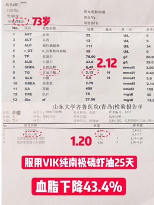比如來自于沂南的蘇先生就一直堅持“親身體驗,數據說話”。包括蘇先生自己、還有其身邊的親人朋友,創造了一家7口人都在食用逢時-VIK威克純南極磷蝦油產品的火熱現象。對于產品效果,尤其是在食用前后的檢驗報告說明下,可以說十分明顯。