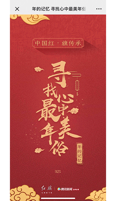 節(jié)日期間喜慶的氣氛、愉悅的心情,使消費者對于外界新事物的接納程度也往往會更高。因此,節(jié)日營銷成為各大品牌角力的關(guān)鍵時間節(jié)點。2019年的春節(jié),騰訊新聞微紀(jì)錄片《年貨》攜手紅旗H5邀請民俗文化專家和非物質(zhì)文化遺產(chǎn)傳承人,淋漓盡致得展現(xiàn)中國年俗之美。通過“春聯(lián)、燈籠、年畫”三個經(jīng)典年俗傳承的品牌故事,幫助品牌在闔家團(tuán)圓時,充分運用節(jié)日營銷的優(yōu)勢,精準(zhǔn)傳遞“中國紅,旗傳承”的品牌內(nèi)涵,同時也將紅旗H5“傳承經(jīng)典,匠心打磨”的品質(zhì)深埋用戶心底。超過700萬次的定制視頻全網(wǎng)播放量,進(jìn)一步提升消費者對紅旗H5品牌的關(guān)注及好感度。