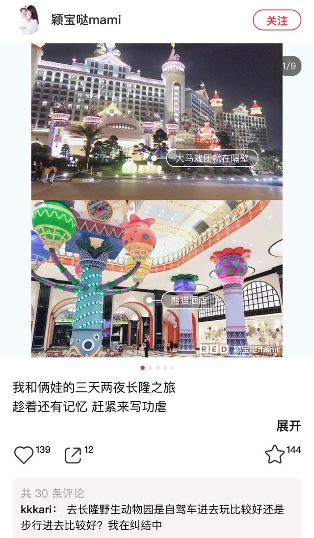 在KOL的分享中,新時代辣媽代言人穎寶噠mami提到,風格迥異的廣州、珠海長隆游可以讓家長與孩子們度過一段難忘的親子時光,不但能夠近距離感受野生動物的呆萌與逗趣,還可以一起加入海洋夜光大巡游、煙花表演等歡樂的派對中。從酒店到游玩,從交通到購票,細致生動的筆記為不少寶媽們提供了一份長隆游玩的“完美攻略”。