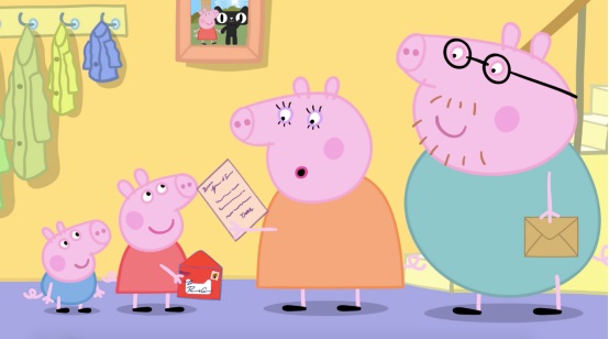 此外,《小豬佩奇》還與天貓共同出現在了一集動畫短片中,定名《小豬佩奇》天貓超級品牌日2019年最新番外篇,在番外篇中,人們可以看到,小豬佩奇一家收到了一張來自天貓的明信片,邀請小豬佩奇一家到中國來做客,目前,《小豬佩奇》番外篇已經在其官方社交媒體與視頻網站全球同步播出。