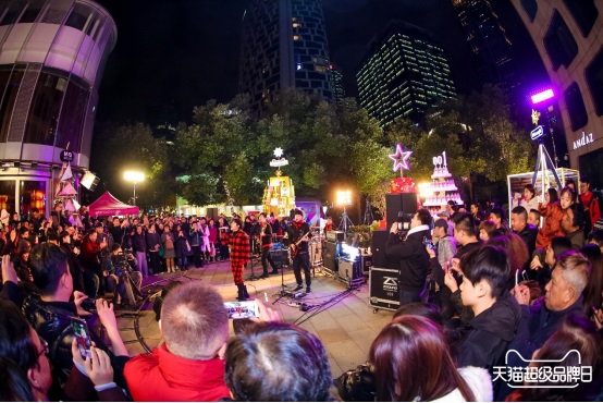 2018年圣誕期間,天貓超級(jí)品牌日攜手嘉人Marie Claire雜志以及12月、1月的各大超級(jí)品牌,一同在上海安達(dá)仕酒店廣場打造了7棵圣誕樹裝置,發(fā)起了“圣誕限定”快閃營銷活動(dòng)。正是在這座線下超級(jí)品牌的圣誕小樹林里,天貓超級(jí)品牌日聯(lián)合網(wǎng)易云音樂stage欄目,邀請(qǐng)伍思凱在平安夜首次現(xiàn)場演唱了《超級(jí)的愛給超級(jí)的你》,名人金曲IP效應(yīng)加成熱情浪漫的圣誕節(jié)日氛圍,瞬間讓整座圣誕小樹林達(dá)到火熱燃點(diǎn),也在各大社交網(wǎng)絡(luò)收獲無數(shù)盛贊。