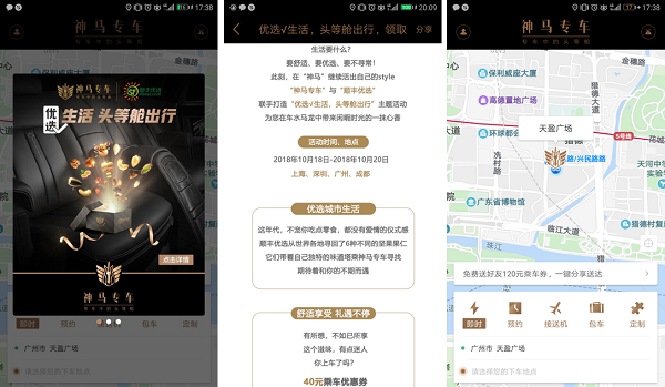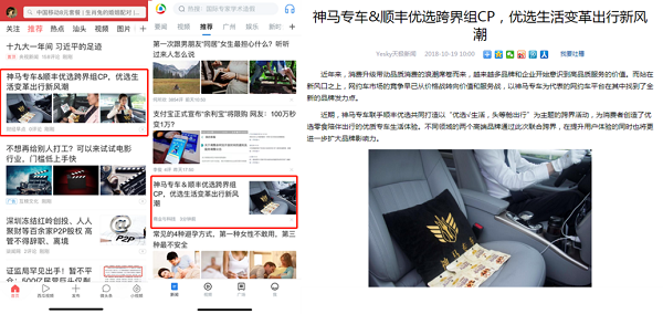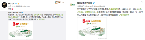 神馬專車牽手順豐優(yōu)選,以“優(yōu)選√生活,頭等艙出行”為主題合力打造了“頭等艙”移動零食鋪,利用“出行+美食”的場景化營銷帶給用戶對品質生活的新體驗,兩大品牌在獲得巨大曝光的同時,更是收到乘客們的滿滿好評。