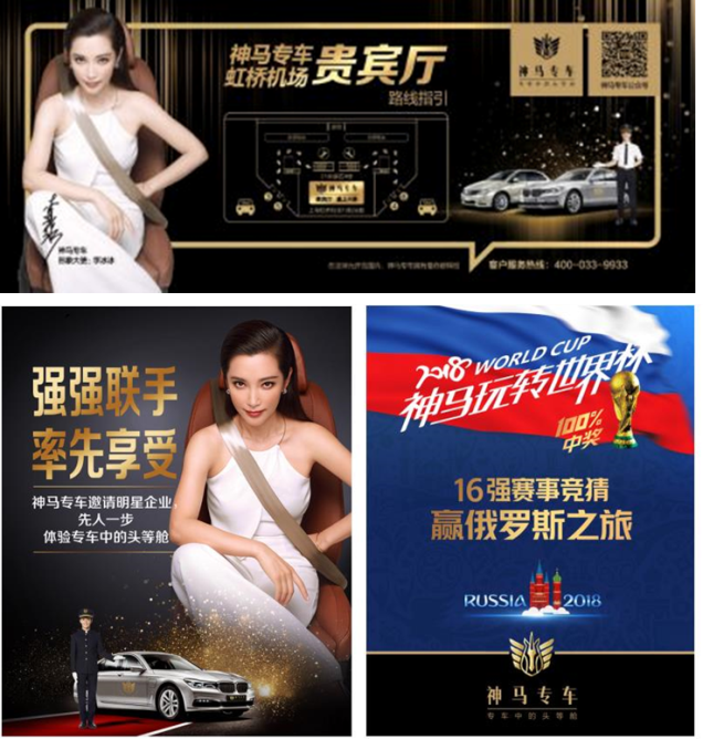 基于對消費者升級出行需求的精準洞察,神馬專車除了與順豐優(yōu)選進行首次品牌跨界外,今年還成功對接“空中頭等艙”服務,已在上海虹橋機場設立專屬貴賓廳;選用李冰冰為代言人,打造一系列能洗刷用戶心智的地鐵海報,詮釋了“享受現(xiàn)在”的品牌主張;以及在滬深進行的地鐵“刷墻”營銷,更出奇地玩了一把品效合一的世界杯營銷……通過有策略性地進行積極營銷,神馬專車正不斷強化自身“頭等艙”的高端品牌形象。
