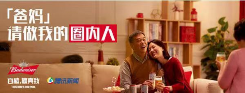 在此次獲獎案例“百威CNY請做我的圈內(nèi)人”中,廣告主百威啤酒通過對當(dāng)前年輕人家庭關(guān)系的洞察,聯(lián)手騰訊社交與騰訊新聞,將父母與子女之間的關(guān)系作為入手點、以“朋友圈”作為切入點,在春節(jié)期間圍繞“圈內(nèi)人”的核心主線,通過微博話題、朋友圈廣告、騰訊新聞、微信大V等渠道開展系列營銷活動,號召兩代人互相理解與支持。經(jīng)過精準(zhǔn)洞察與跨平臺整合營銷,百威抓住年輕用戶群體的情感需求,最終達成了提高品牌號召力的營銷目的。
