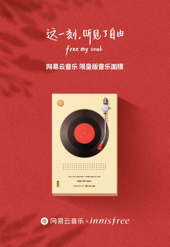 據介紹,本次雙方跨界的合作主題“這一刻,聽見了自由” 靈感來自于每個人一天中最放松的時刻,即入睡前的那一刻。入睡前音樂和面膜在一起產生的化學反應,能夠讓人體驗到靈魂的自由與放松感,雙方合作推出的音樂面膜、以及網易云音樂X Innisfree-NINE PERCENT心聲電臺,是期望每一個人都能體驗到身心放松的幸福時刻,享受靈魂的自由感受。據了解,網易云音樂限量版音樂面膜相比常規面膜內容要更加豐富,一盒音樂面膜內含了12張網易云音樂版本面膜、4張常規面膜、1套電臺卡片以及NINE PERCENT盲卡隨機抽。